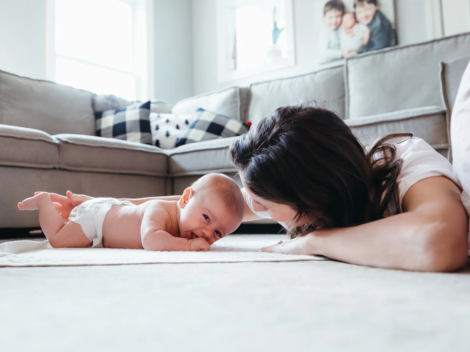 It is never too soon to start supervised tummy time! Tummy time strengthens your baby’s back and neck muscles and prevents flat spots from forming on the back of baby’s head.